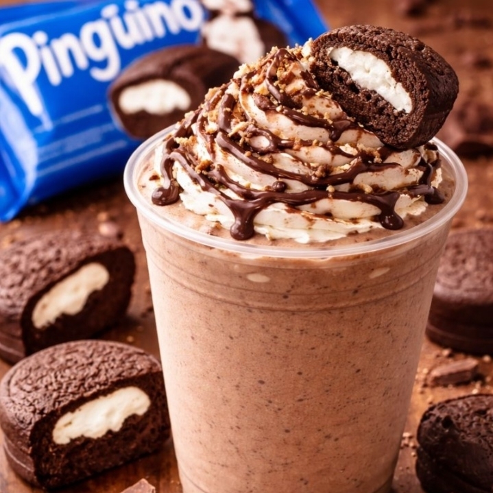 Delicioso frappé sabor pingüino marinela, con crema batida (16 onzas).