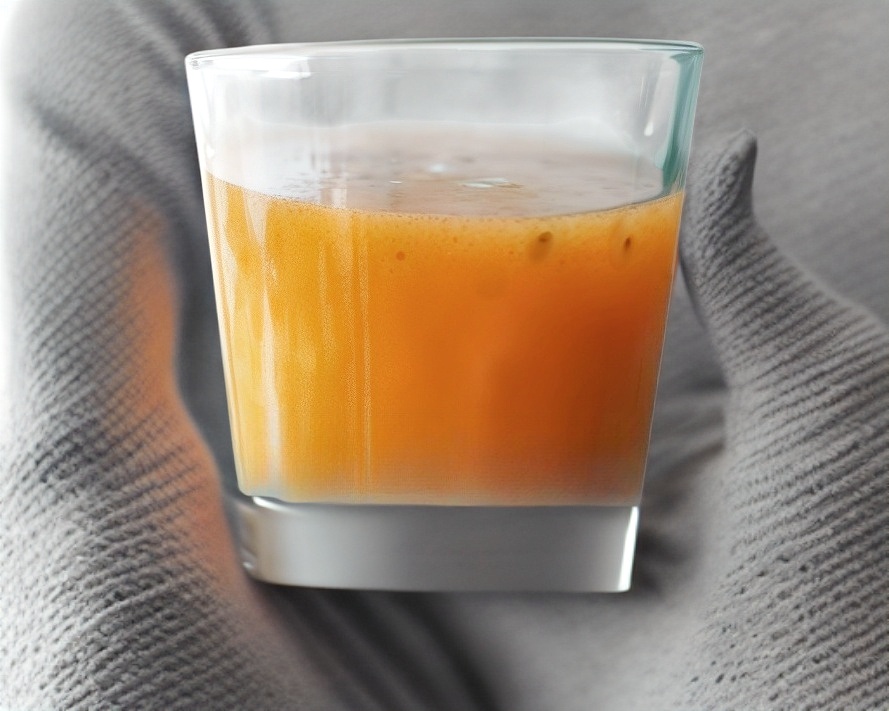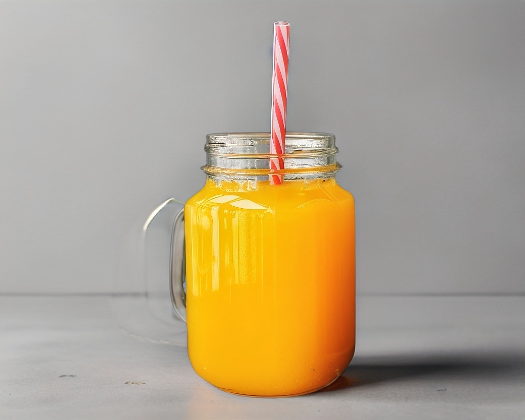 Jugo exótico de mango, zanahoria, naranja y jengibre.