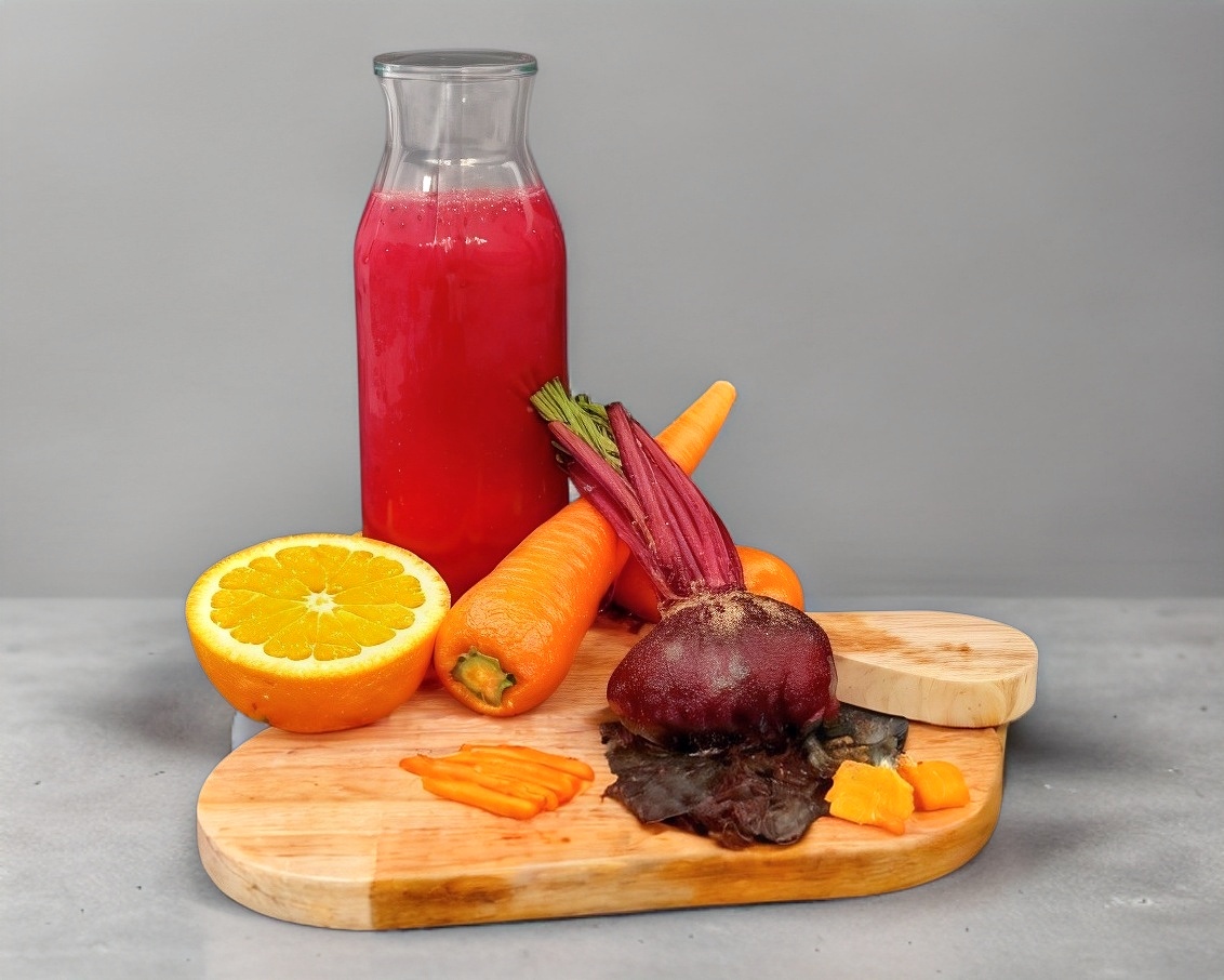 Bebida energética con betabel, zanahoria y naranja.