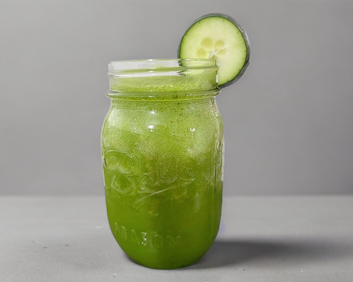 Jugo revitalizante con espinaca, piña, manzana, pepino y limón.