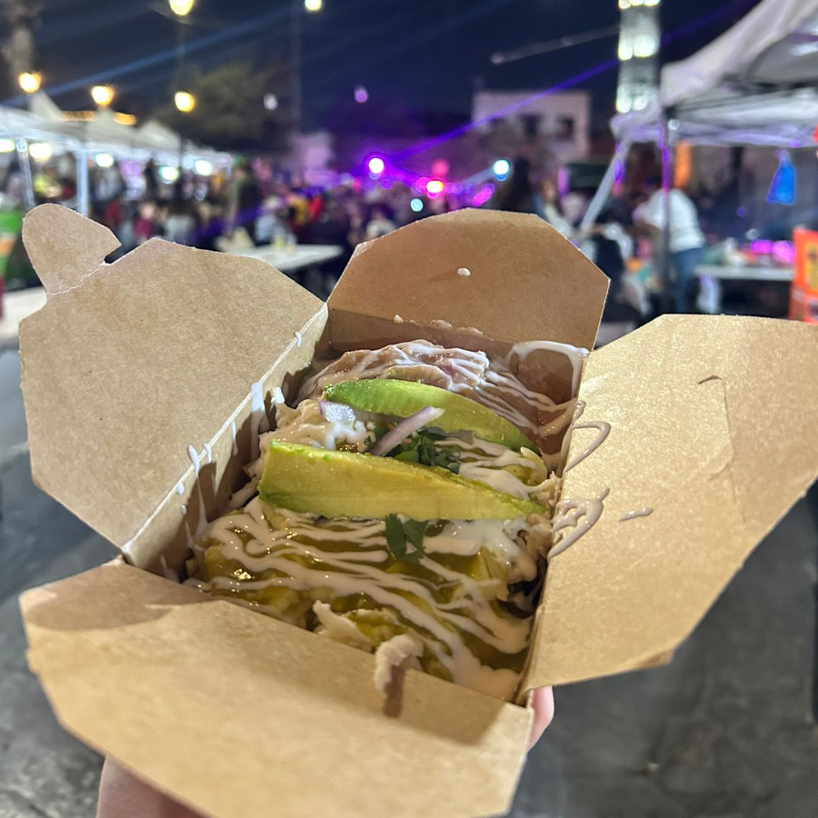 TOTOPOS, MEZCLA DE QUESOS MANCHEGO Y OAXACA, AGUACATE, CEBOLLA MORADA