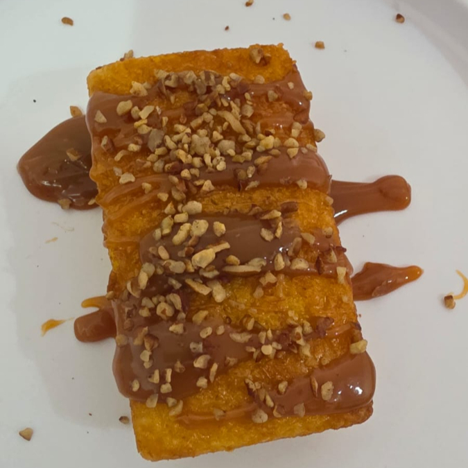 Delicioso pan de elote con cajeta y nuez