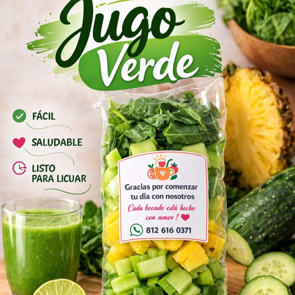 Incluye 5 jugos verdes, perfecto para tu rutina de lunes a viernes, solo agrega agua y licua