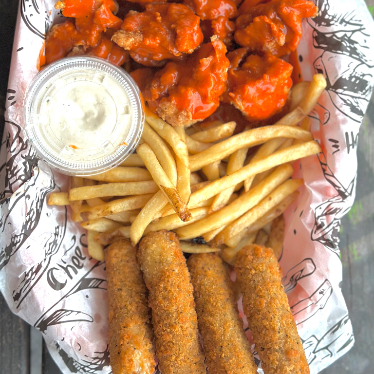 350 gr. de boneless bañados en salsa de tu elección acompañados de papas fritas y aderezo ranch.