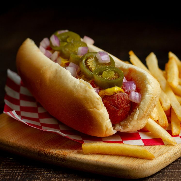 Pan, Salchicha Roja, Aderezos, Tomate, Cebolla, Incluye Papas.