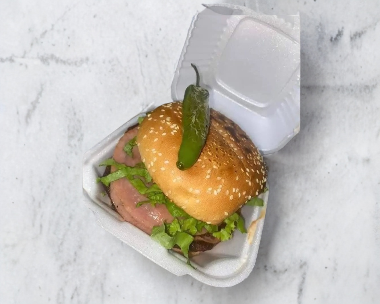 Con carne lechuga, tomate, cebolla, queso amarillo, queso blanco, jamón, tomate, kétchup.