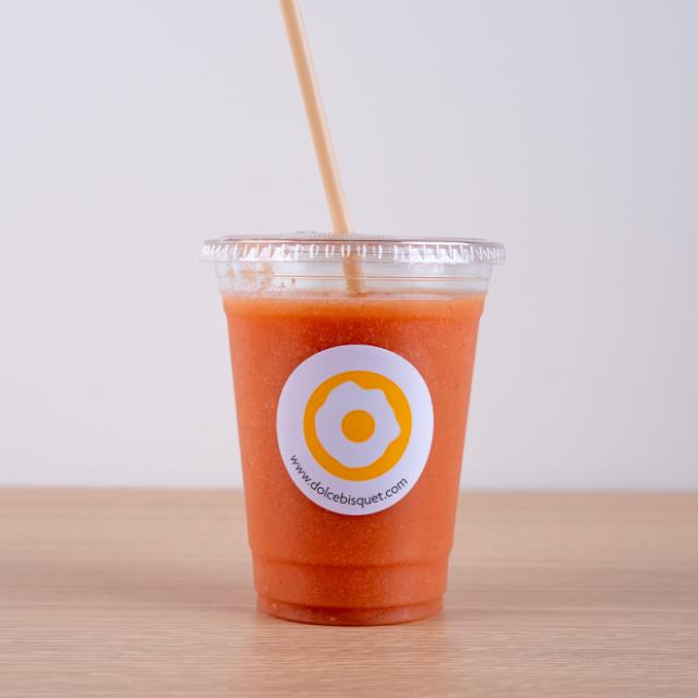 Jugo Natural de Naranja, Fresa y Papaya.