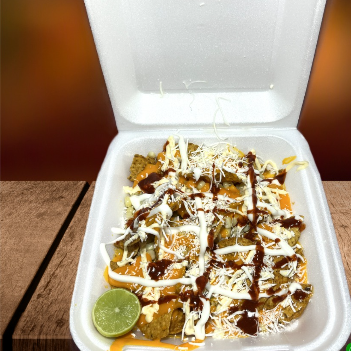 Combinado con rancheritos (sabritas todo tipo) queso amarillo, y queso blanco rayado.