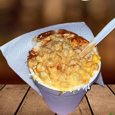 Combinado con queso amarillo, queso rayado blanco, y chile rojo en polvo.