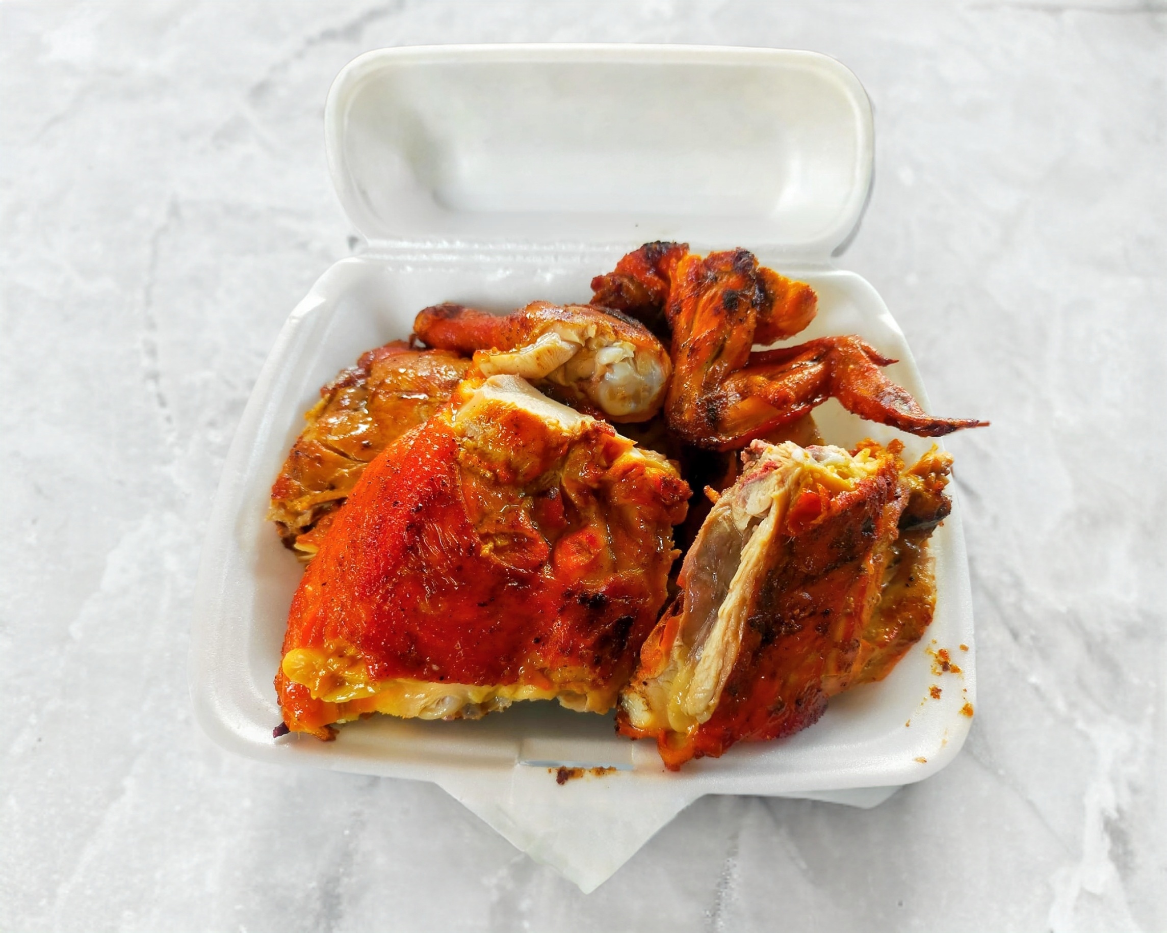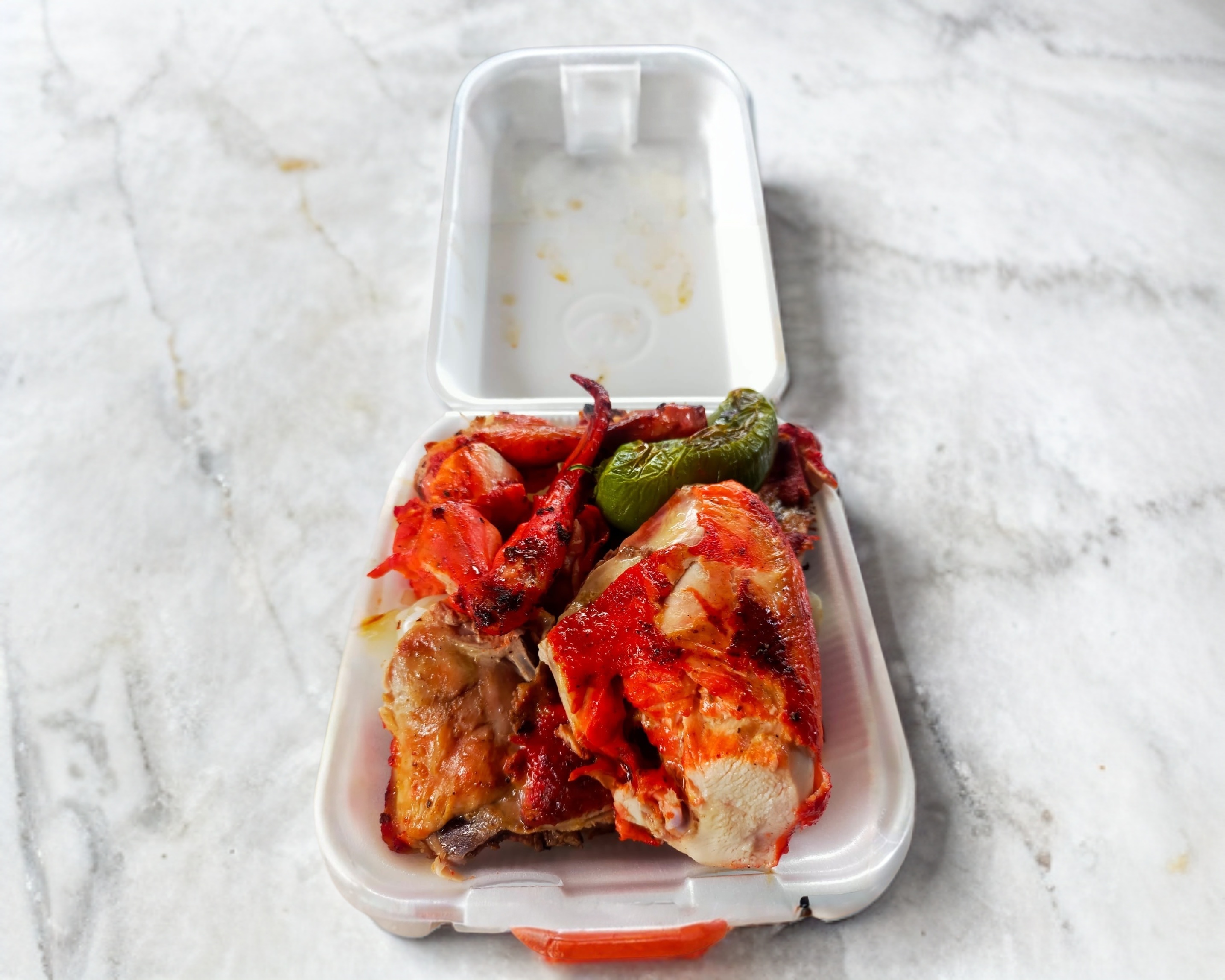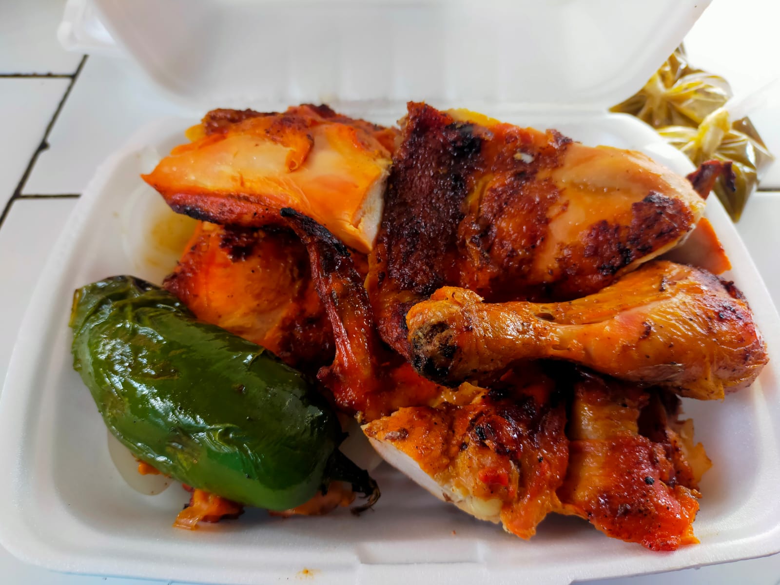 Pollo asado Incluye cebolla, 10 tortillas, salsa tatemada, chile toreano y limón