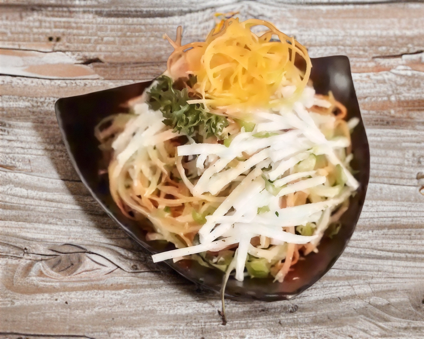 PEPINO, ZANAHORIA, VINAGRETA, FURIKAKE CON ADEREZO SPICY Y SALSA ANGUILA