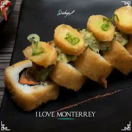 ROLLO FRIO CON SURIMI TEMPURA Y QUESO CREMA, MONTADO DE CAMARON FRESCO Y CAMARON TEMPURA Y MIX DE QUESO GRATINADO CON CHIPOTLE.
