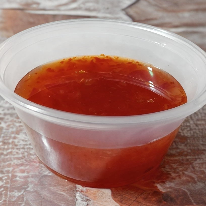 Por dentro: Queso crema, aguacate, sirlon y pollo. Por fuera: Empanizado con Chetos Flaming hot, tampico y chetos