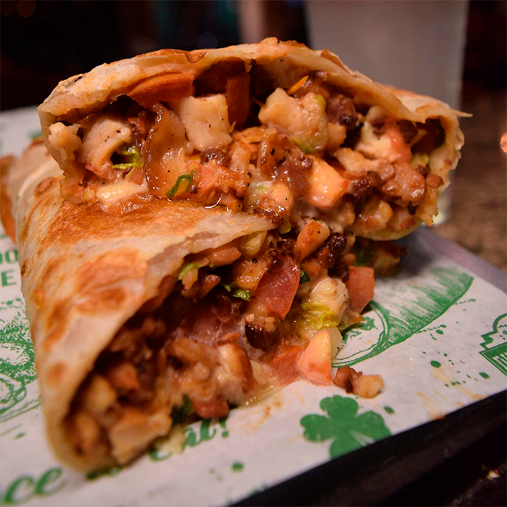 "¡Llenas porque, llenas! Burrito con pechuga de pollo, queso asadero, lechuga, tomate, hot beans y ranch."