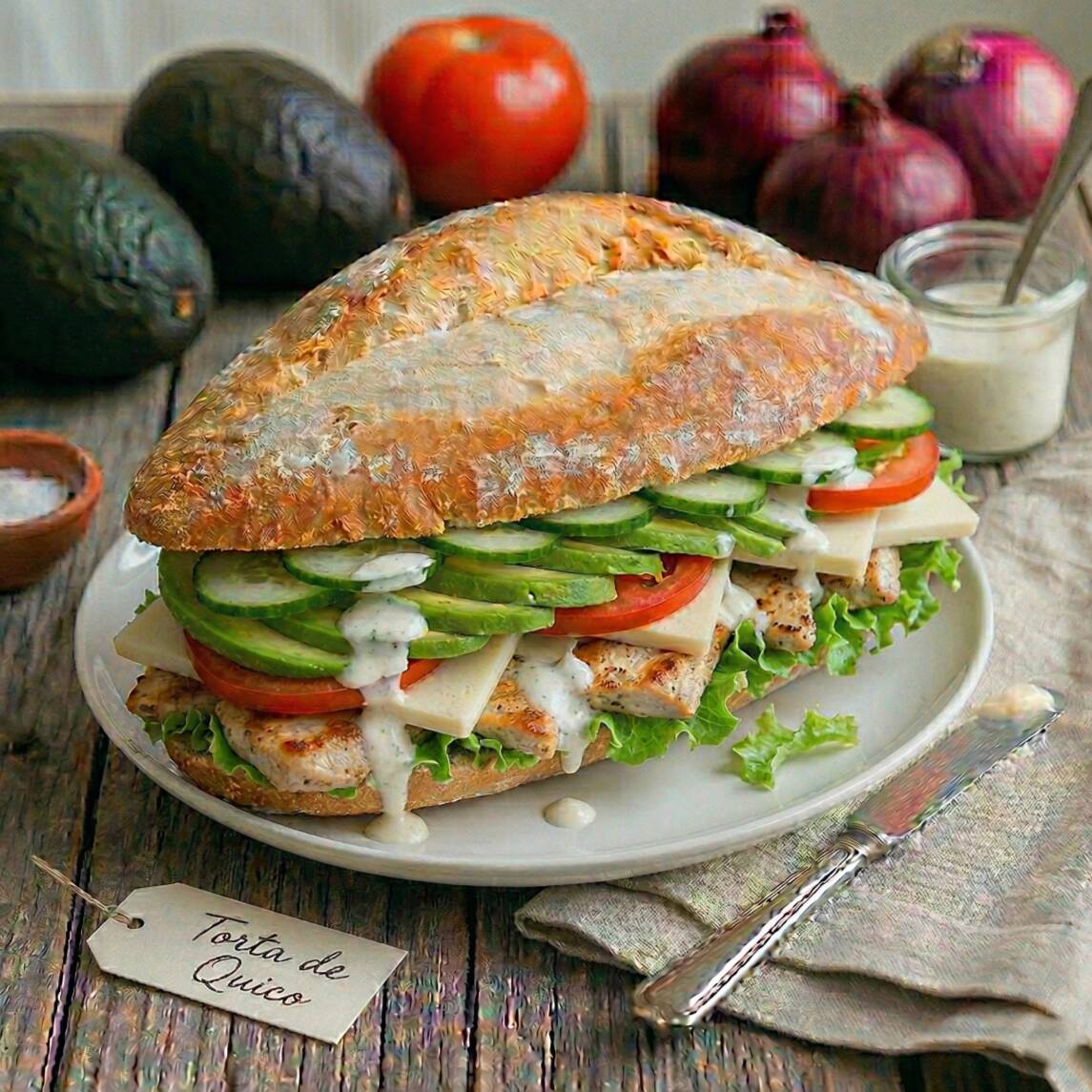 Pechuga de pollo, Queso Blanco, Aguacate, Lechuga Italiana, Tomate, Pepino, Ranch.