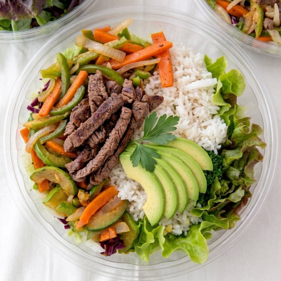 ✨ Suaves trozos de res salteados a la plancha con pimiento verde y cebolla morada, realzando su sabor con un toque irresistible. 🍚 Acompañado de arroz blanco al vapor, esponjoso y ligero. 🥗 Servido sobre una fresca cama de vegetales: lechuga crujiente, tomate jugoso, pepino refrescante, pimiento verde, cebolla morada y aguacate cremoso. 🔥 Un platillo lleno de sabor, frescura y equilibrio par