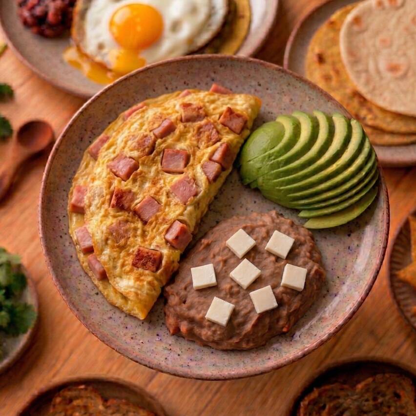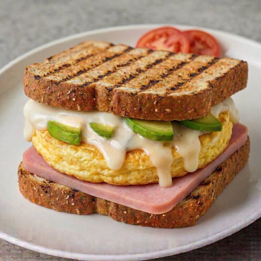 Disfruta de un sándwich gourmet con un suave omelette, jamón crujiente, queso manchego derretido, aguacate fresco y cremosa mayonesa, todo perfectamente combinado para satisfacer tus antojos." 🔹 Este sándwich no admite modificaciones. Si deseas personalizarlo, elige la opción "arma tu sándwich" para adaptarlo a tu gusto.