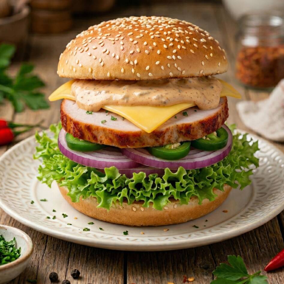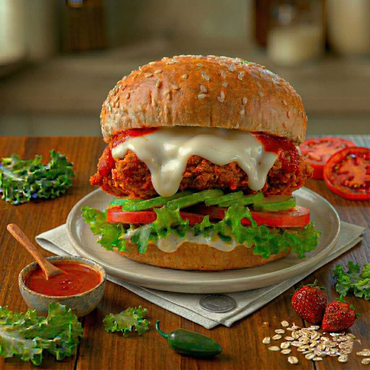 Deliciosa hamburguesa Fajita Tender Natural, Queso Amarillo, Tomate, Lechuga Italiana