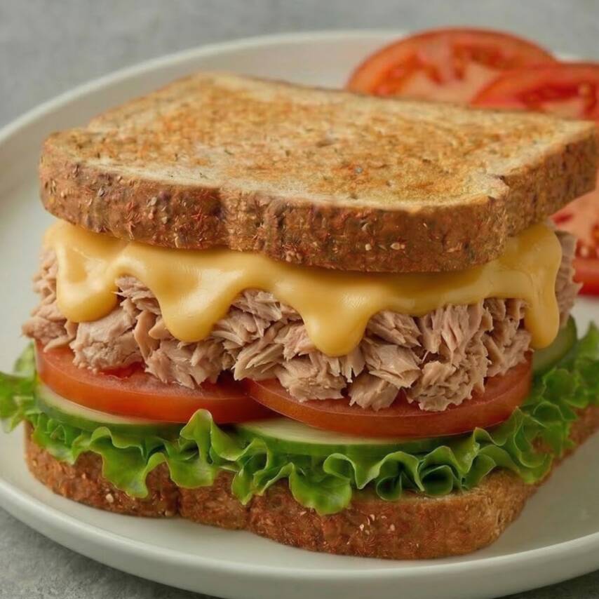 Atún (a tu gusto), queso amarillo, lechugas romanas, espinaca, pepino, pimiento verde, aguacate, tomate y cebolla morada. Puedes elegir entre porción de ensalada o porción de papas deshidratadas. (No se puede modificar, si requiere alguna sándwich de forma especial ve a arma tu sándwich y ahí podrá).