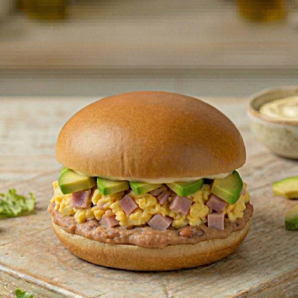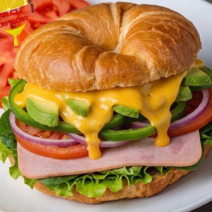 "¡Nuestra versión con el auténtico sabor de casa! Disfruta de un croissant hojaldrado relleno de jamón de pavo y queso amarillo fundido sobre una base de frijoles refritos. Preparado con lechuga fresca, tomate, cebolla, el toque cremoso del aguacate, mayonesa y chiles jalapeños para un cierre perfecto. ¡Tradición y frescura en cada mordida!"