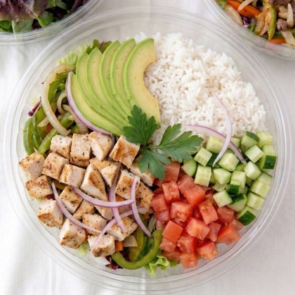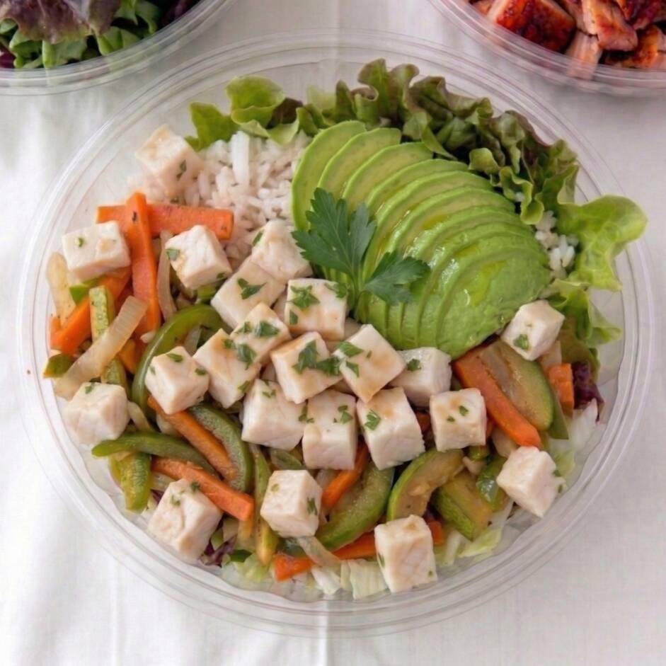 ✨ Suaves y jugosos trocitos de pollo a la plancha, dorados a la perfección para resaltar su sabor. 🍚 Acompañados de arroz blanco al vapor, ligero y esponjoso. 🥑 Con aguacate cremoso y un delicioso huevo cocido, aportando un extra de proteína y sabor. 🥗 Servido sobre una cama de lechuga fresca y vegetales crujientes a tu elección: 🍅 Tomate jugoso 🥬 Espinaca nutritiva 🧅 Cebolla morada con u