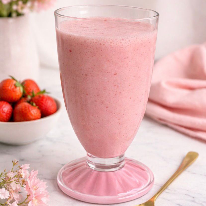 Delicioso licuado preparado con leche entera, servido en vaso de medio litro, elaborado con fresas y plátano natural, logrando un sabor equilibrado entre lo dulce y lo fresco, con una textura cremosa y agradable. Ideal para cualquier momento del día.