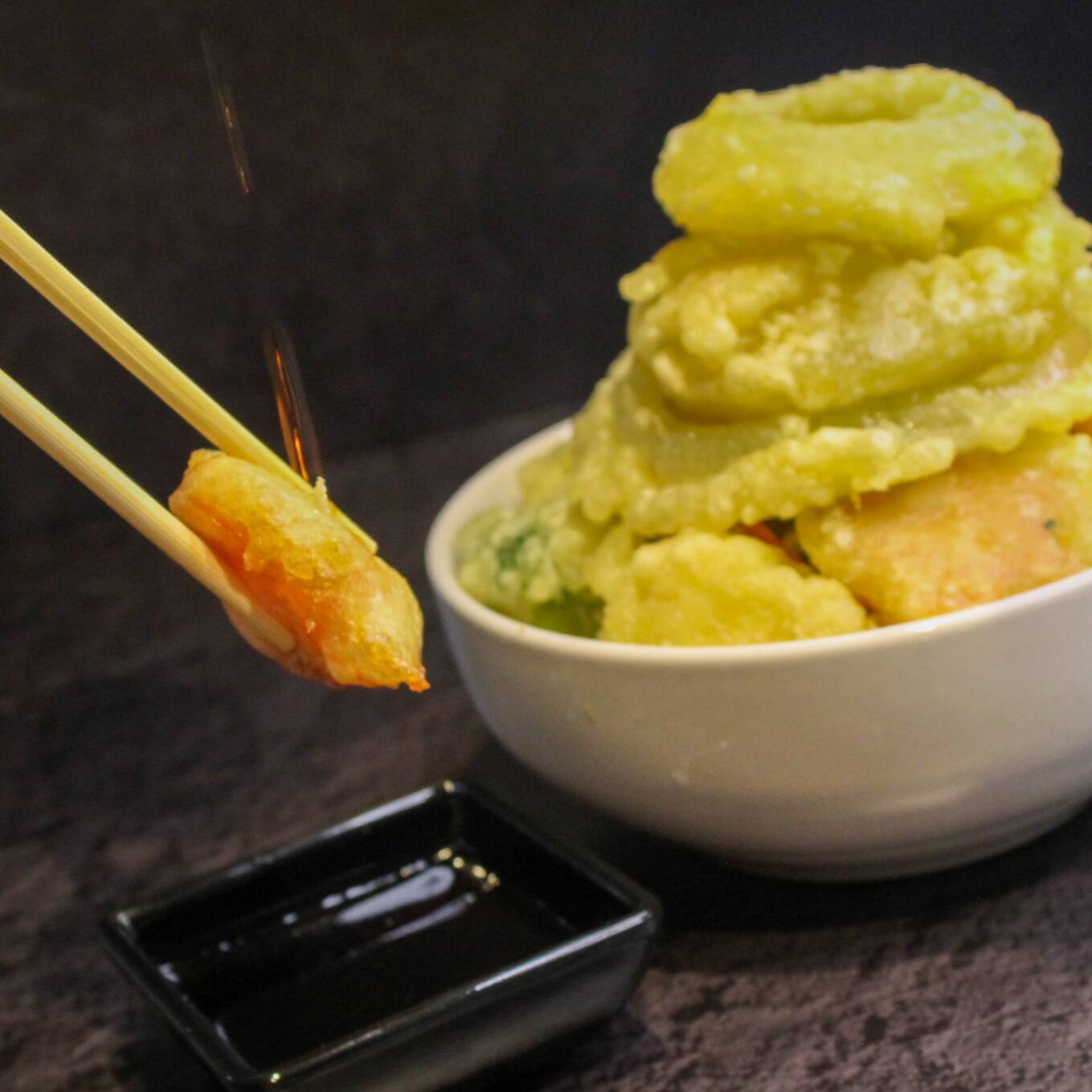 Exquisita pasta japonesa mezclada con camarones y mix de verduras bañada en salsa de la casa.