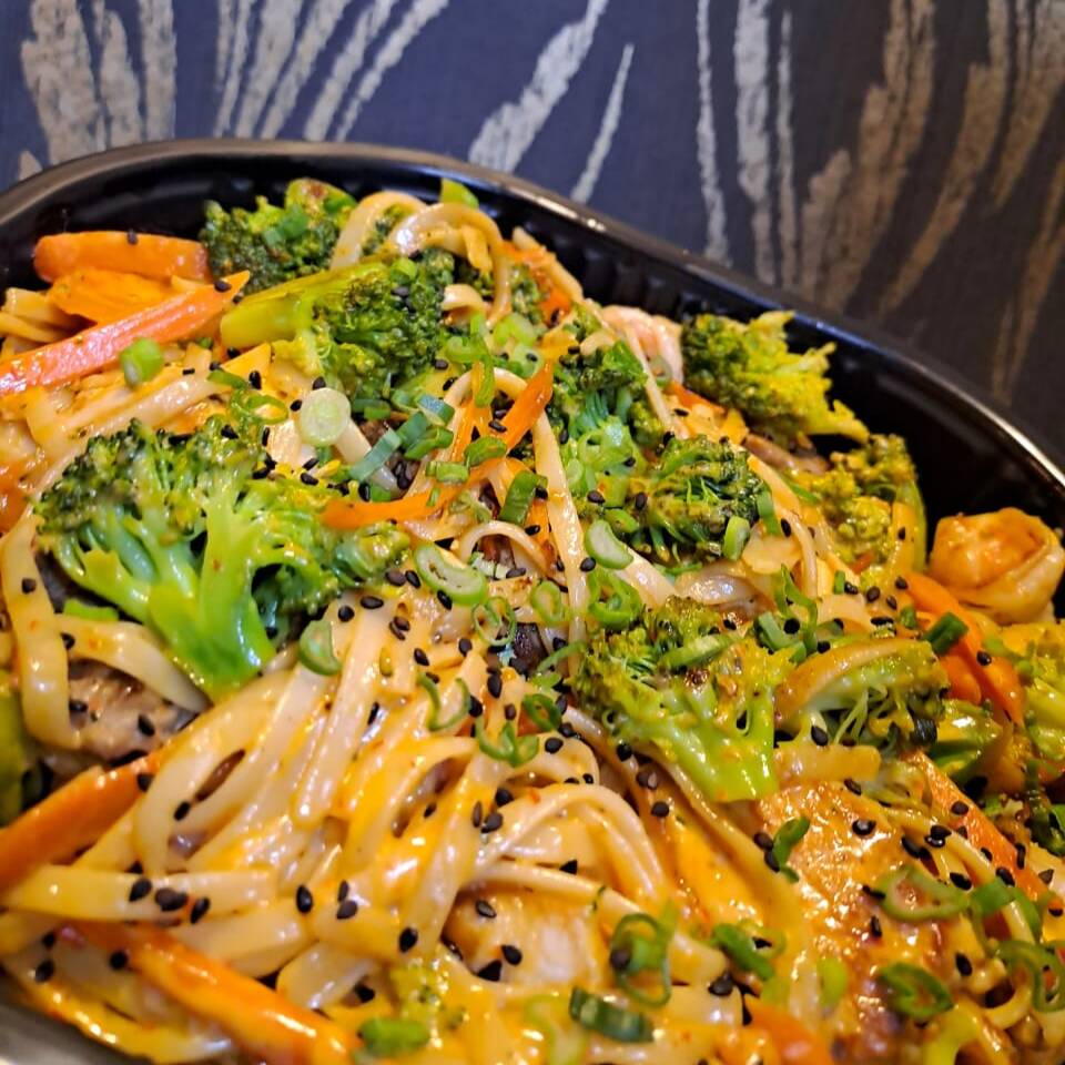 Deliciosa pasta japonesa con ricas verduras, bañada en salsa spicy, cebollin y ajonjoli negro.