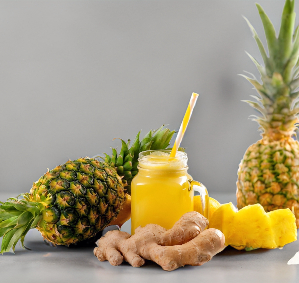 Naranja, manzana, piña, guayaba y jengibre