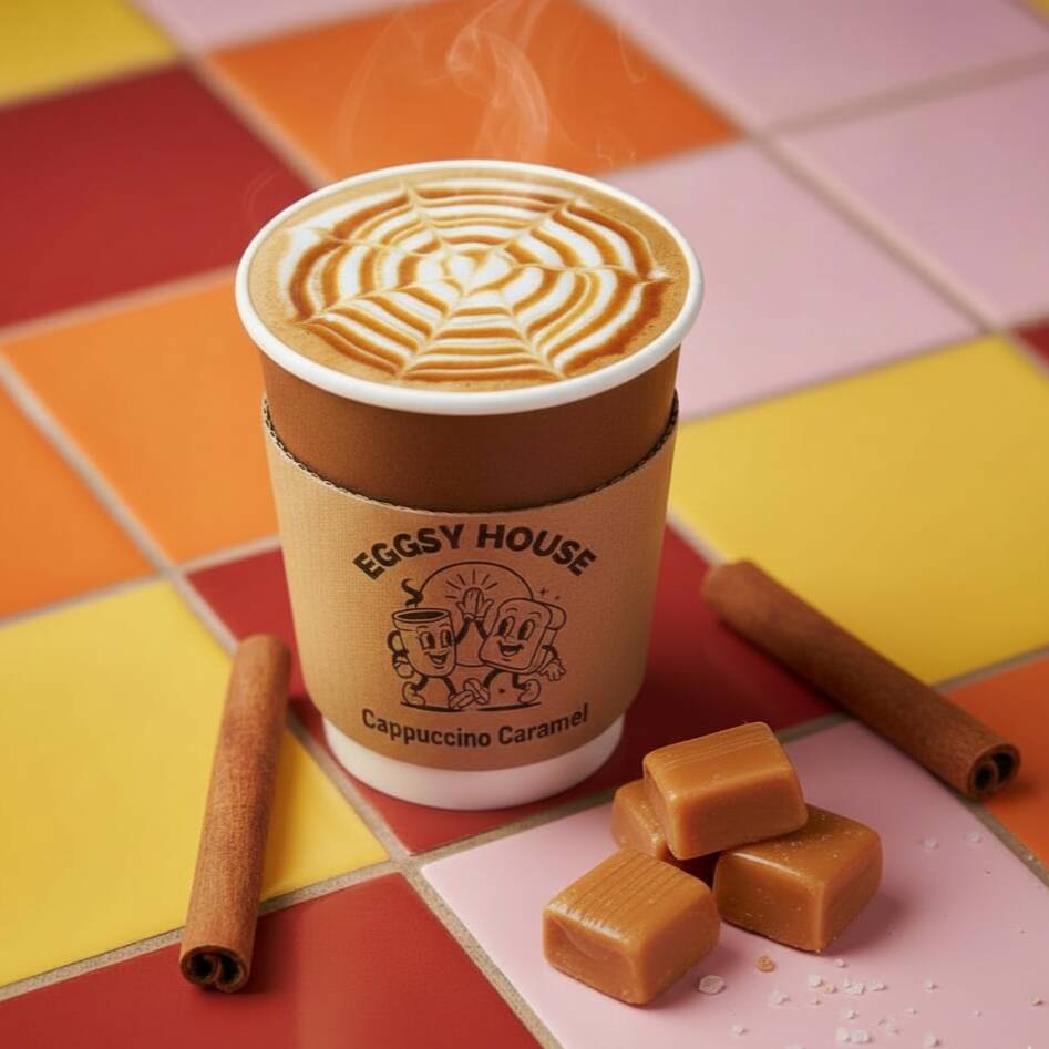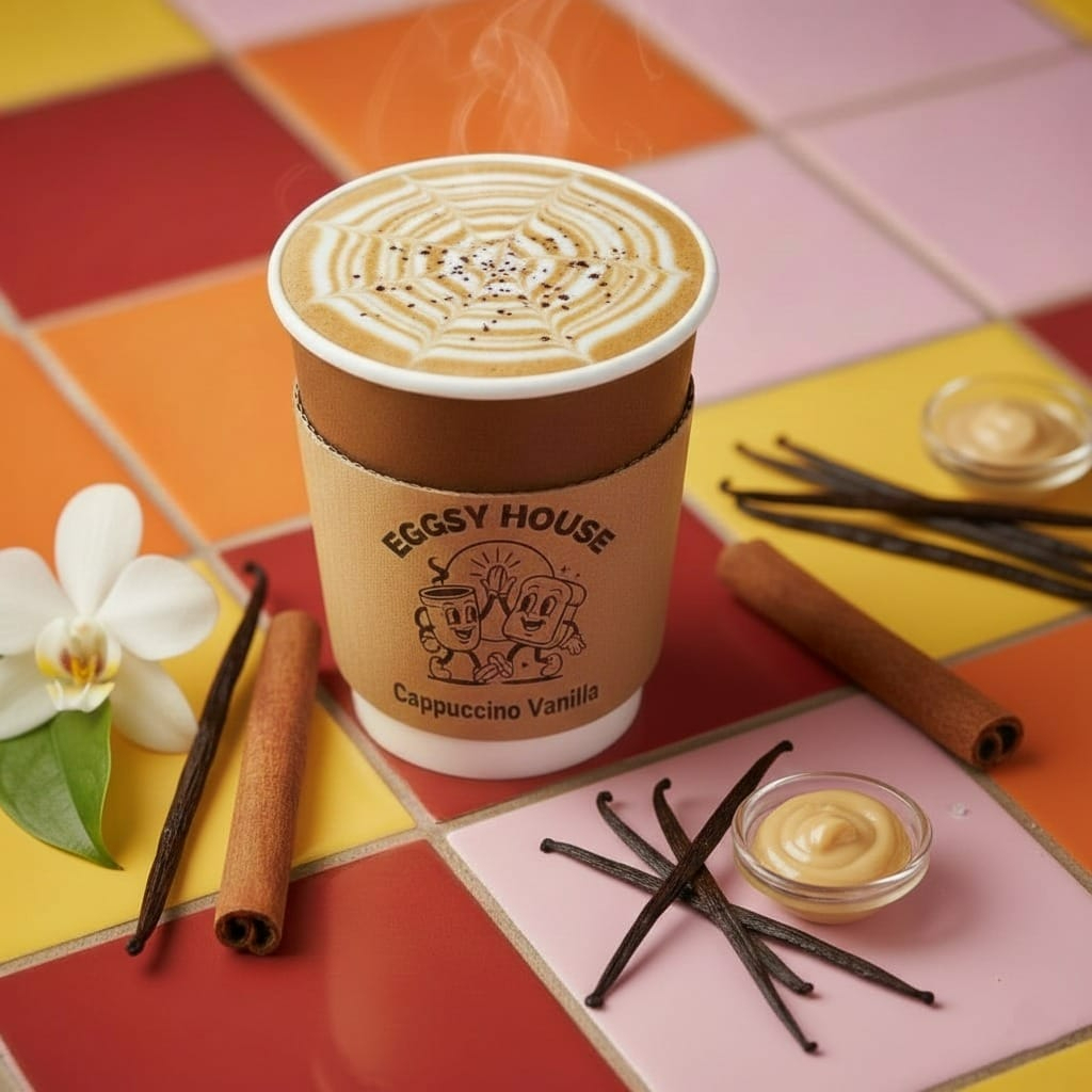 Capuchino de 12 oz con syrup de vainilla francesa.