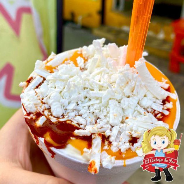 Vaso 8 oz de elote blanco desgranado con crema, queso amarillo, queso blanco, mayonesa y chile no pica.