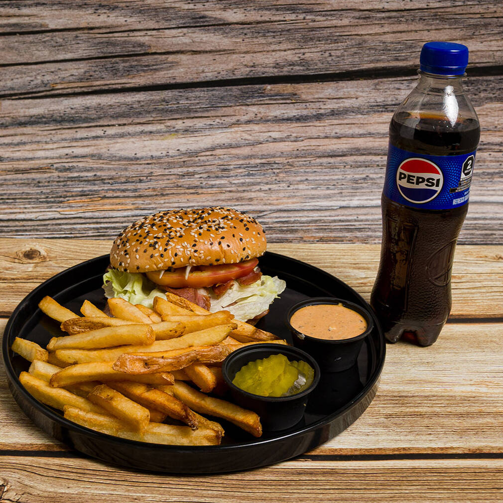 Hamburguesa Luna 110g , Papas , Refresco.