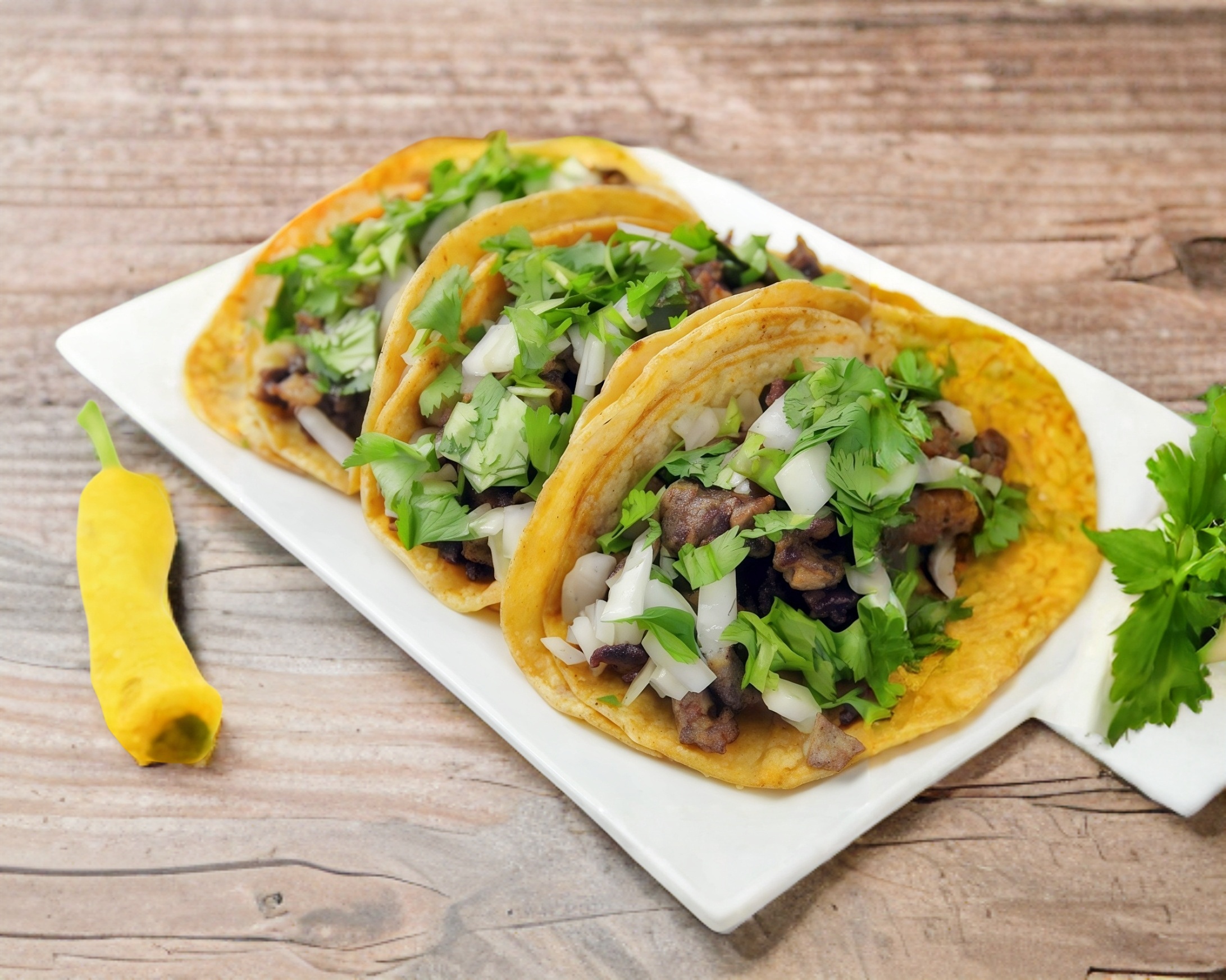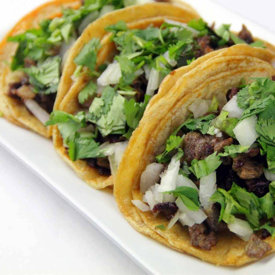 1 Orden de 5 tacos de Bistek, cebolla asada, cebolla y cilantro picado, limon,salsa
