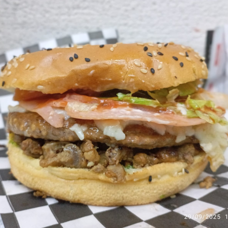 2 CARNES SABOR SIRLON 150 GRS, AGUACATE, CAMA DE LECHUGA , TOMATE, PEPINILLOS, QUESO CHIHUAHUA , QUESO CHEDAR, JAMON Y SALAMI