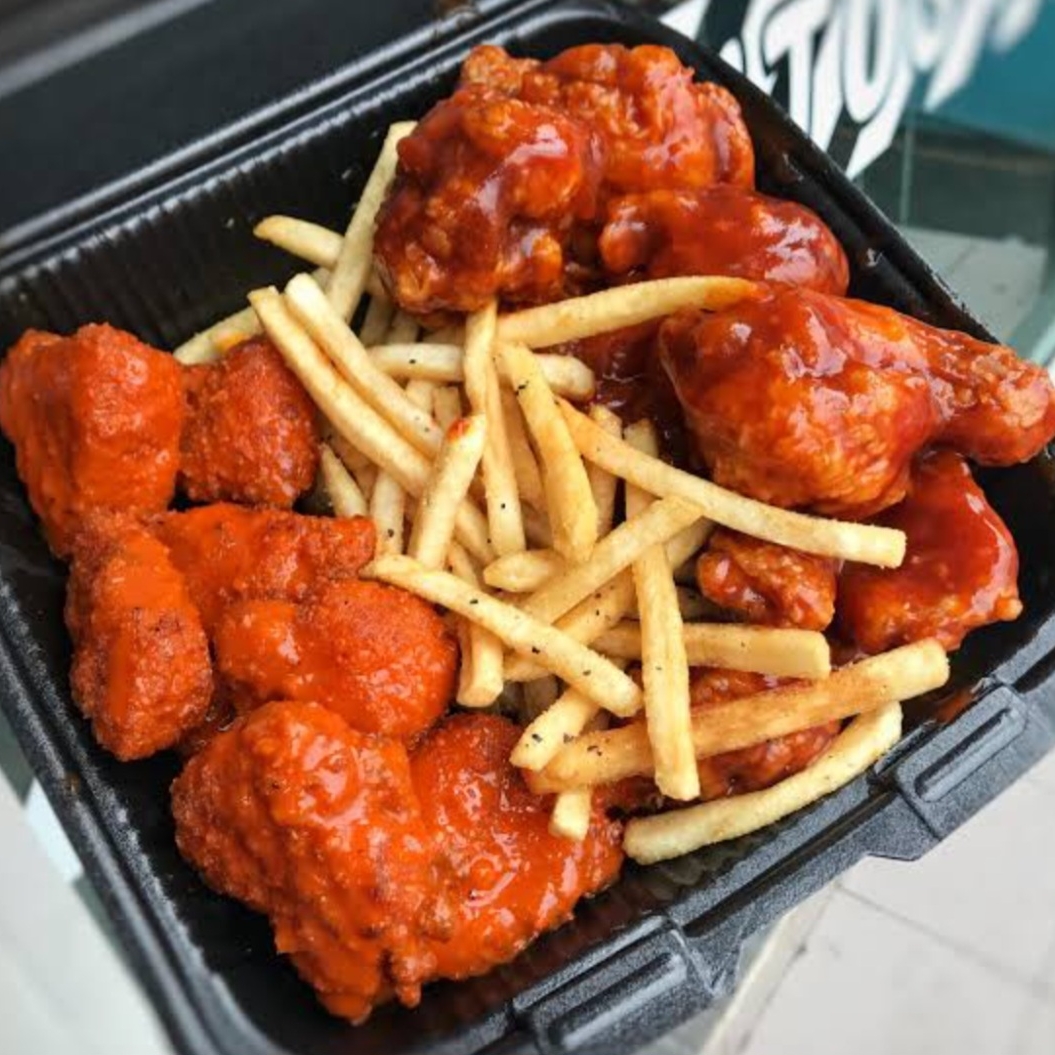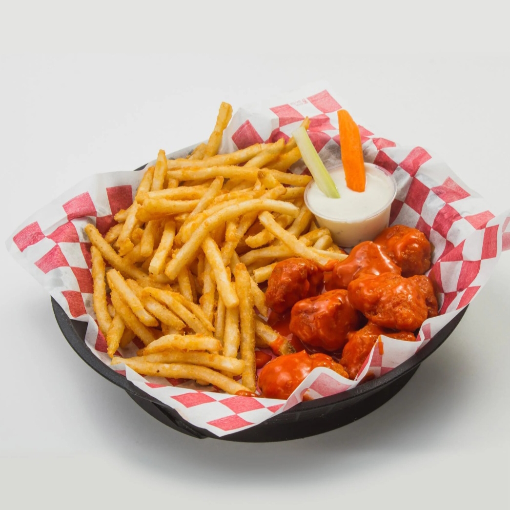 6 PZ DE BONELESS PERSONAL BAÑADOS EM TU SALSA FAVORITA ACOMPAÑADOS DE PAPAS A LA FRANCESA