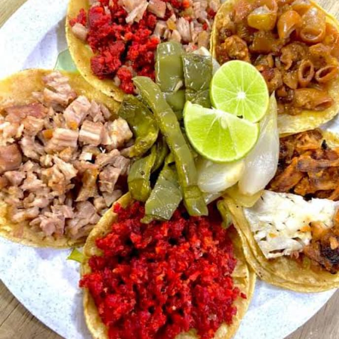 5 TACOS DE TROMPO, SALSA Y LIMON