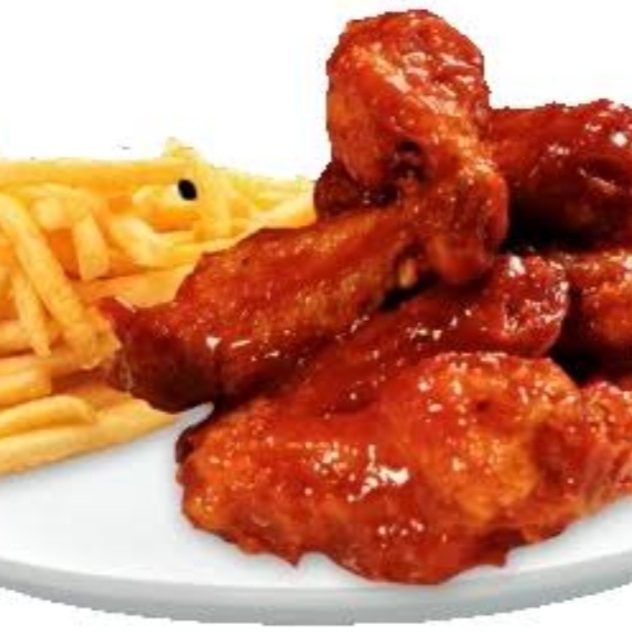5 PZ DE ALITAS BAÑADAS EN TU SALSA FAVORITA ACOMPAÑADAS DE PAPAS A LA FRANCESA