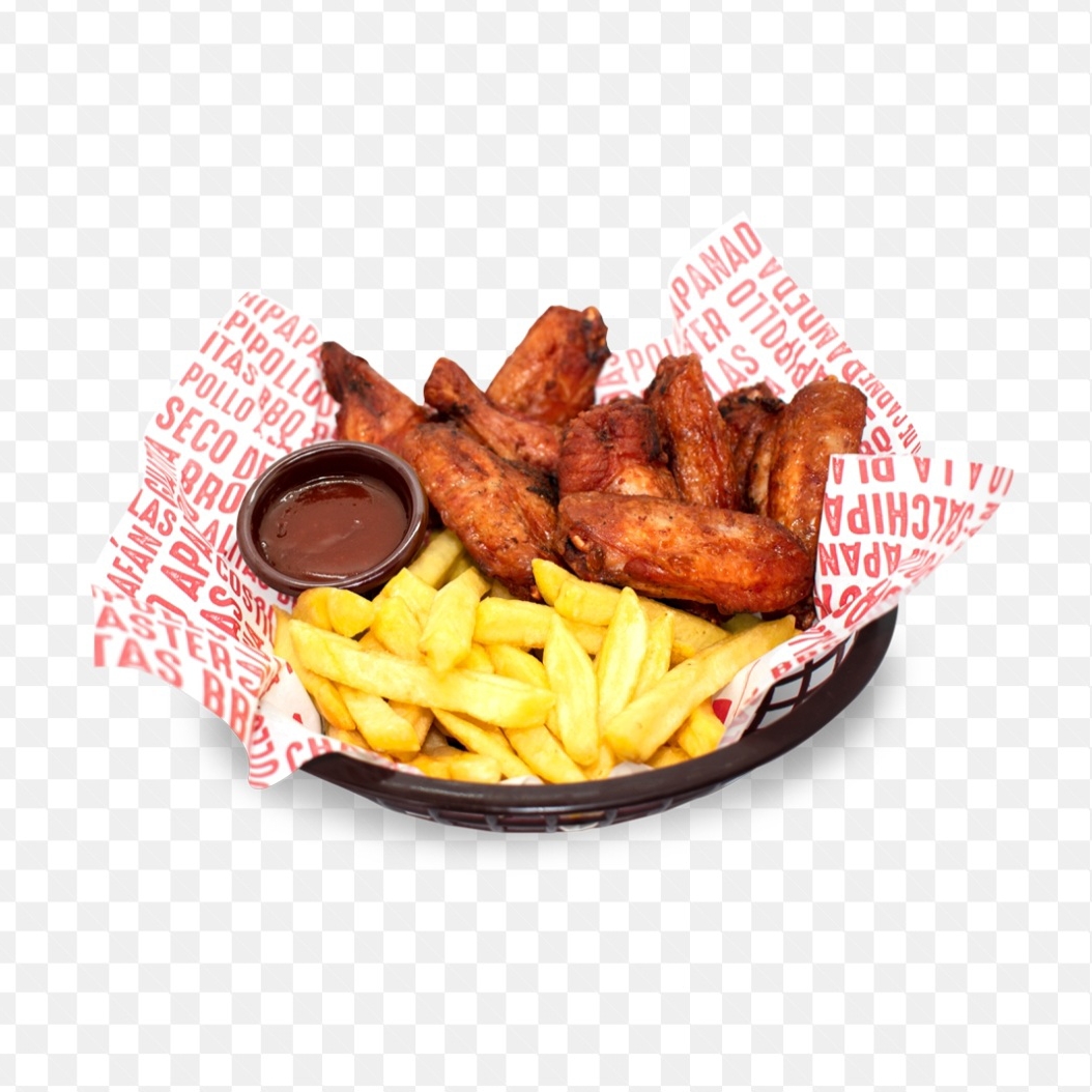 1 KG DE ALITAS BAÑADAS EN TU SALSA FAVORITA ACOMPAÑADAS DE PAPAS A LA FRANCESA