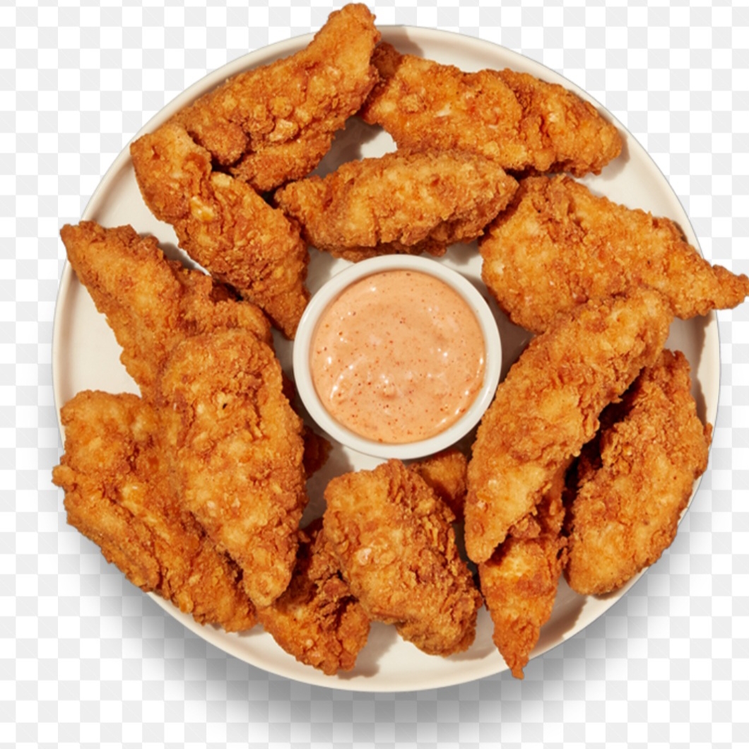 13 PZ DE TENDERS BAÑADOS EN TU SALSA FAVORITA ACOMPAÑADOS DE PAPAS A LA FRANCESA