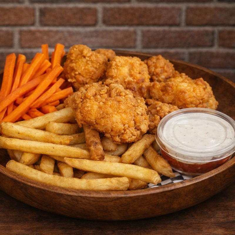Trozos de pechuga de pollo empanizados y crujientes, bañados en la salsa de tu elección. Acompañados de aderezo ranch. Salsas disponibles: Búfalo, Mango Habanero o BBQ.