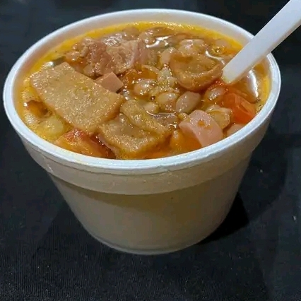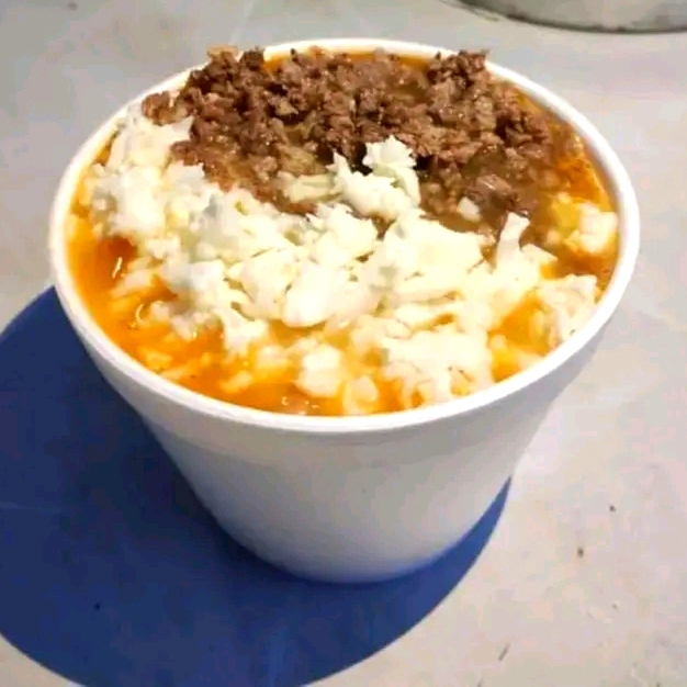 Frijoles tipo charro preparado con carne y queso