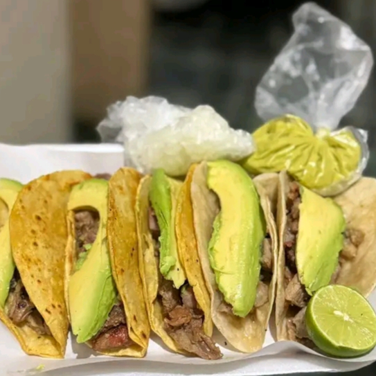 Tacos de maíz con carne asada queso y aguacate