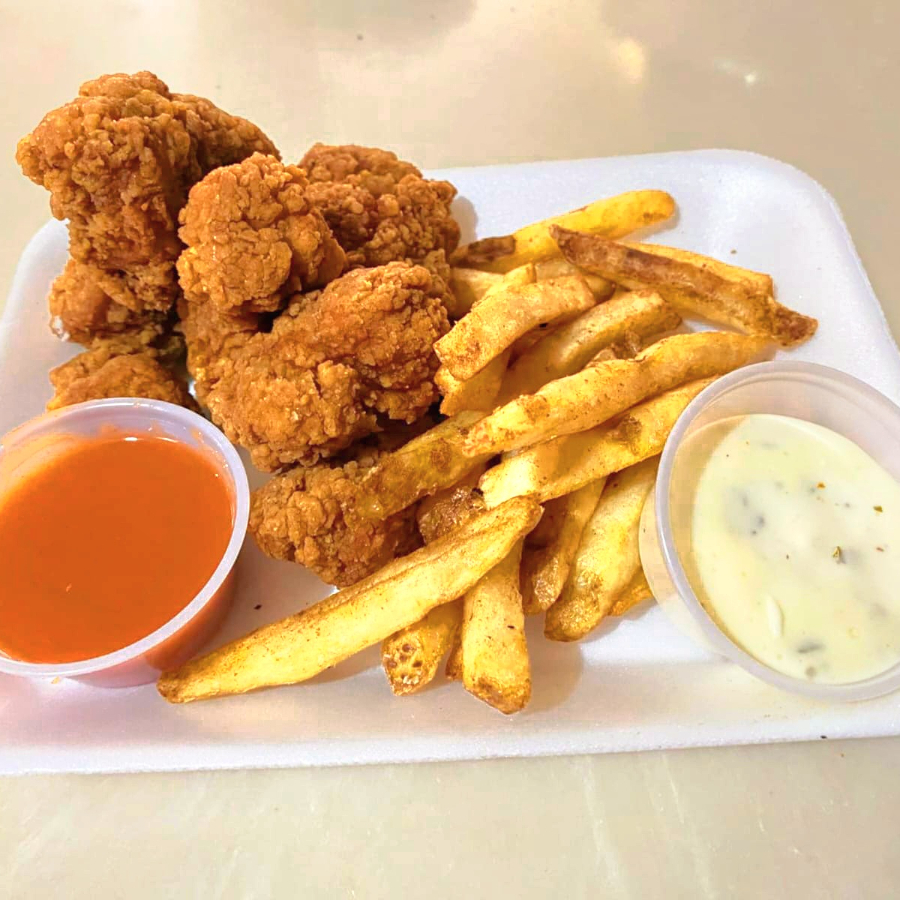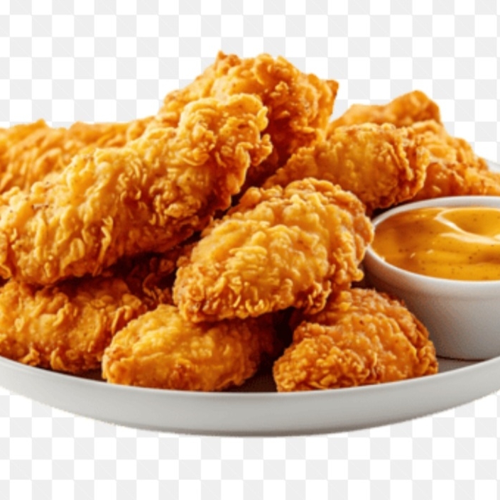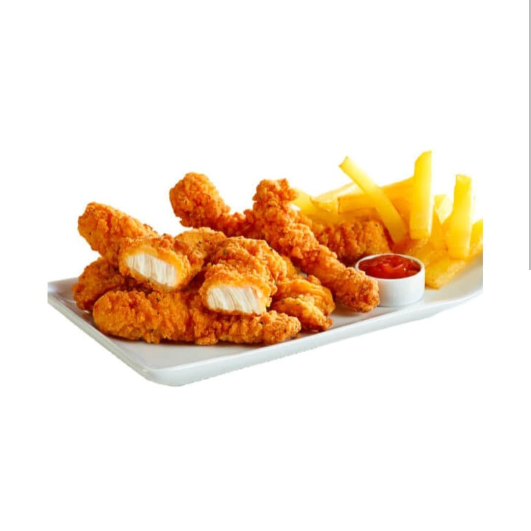 8 PIEZAS DE TENDERS ACOMPAÑADOS DE PAPAS A LA FRANCESA Y SALSAS A ELEGIR