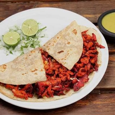 TORTILLA DE HARINA MEDIANA , CARNE DE TROMPO Y BISTEC ,SALSA , QUESO ASADERO Y LIMONESB