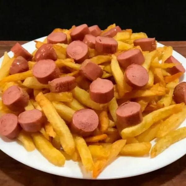 PAPAS A LA FRANCESA CON SALCHIHA , QUESO NACHOS Y TOCINO