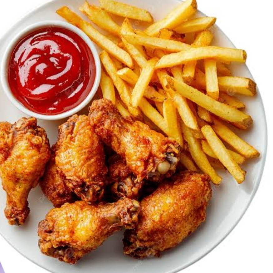 1 KG DE ALITAS ACOMPASÑADA DE PAPAS A LA FRANCESA , Y SALSAS A ELEGIR