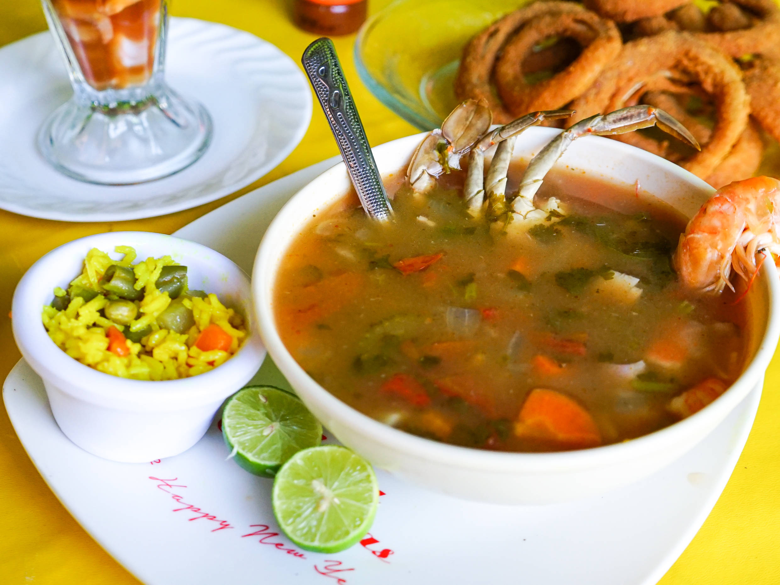 1 litro, jaiba, makuil, pulpo, surimi, camarones, acompañado de arroz, totopos, galletas, salsa y aderezo