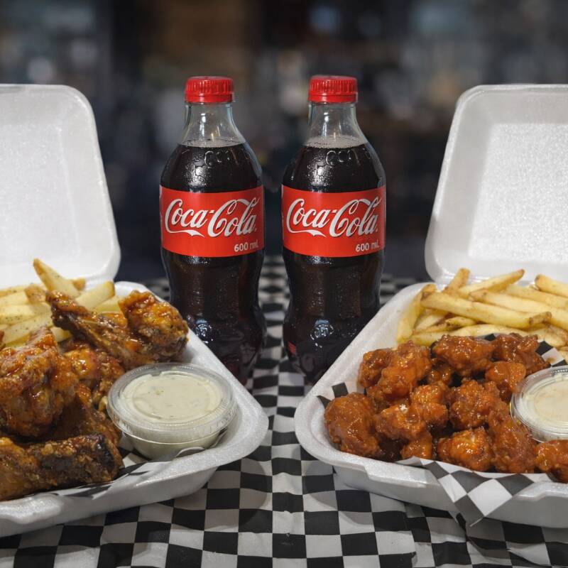 Boneless Buffalo con Papas*1 + Alitas y Papas Fritas*1+2 refrescos coca-cola 600ml