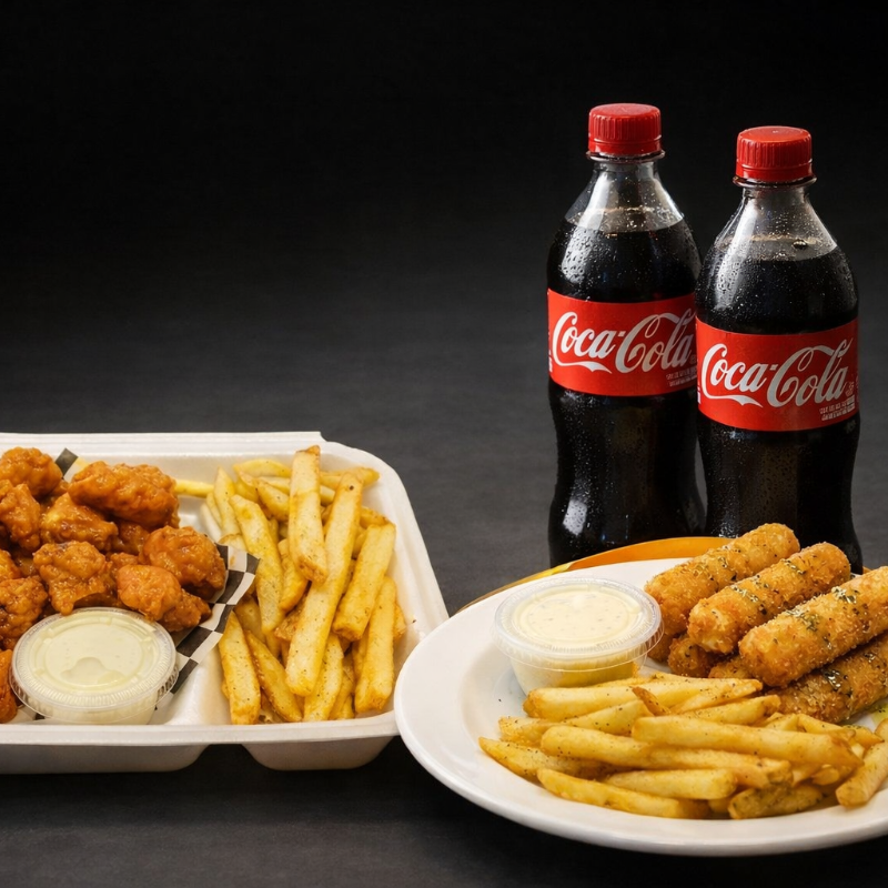 Boneless Buffalo con Papas*1 + Dedos de Queso con Papas*1 + COCA-COLA 600ml*2