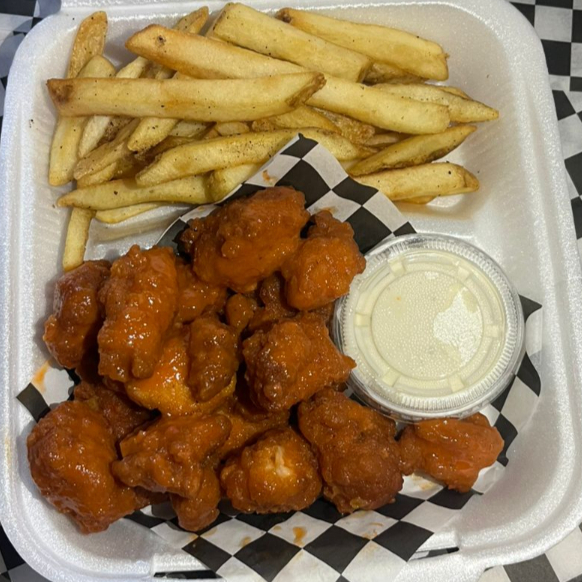 Boneless Buffalo con Papas*1 + Hamburguesa con Boneless y Papas*1
